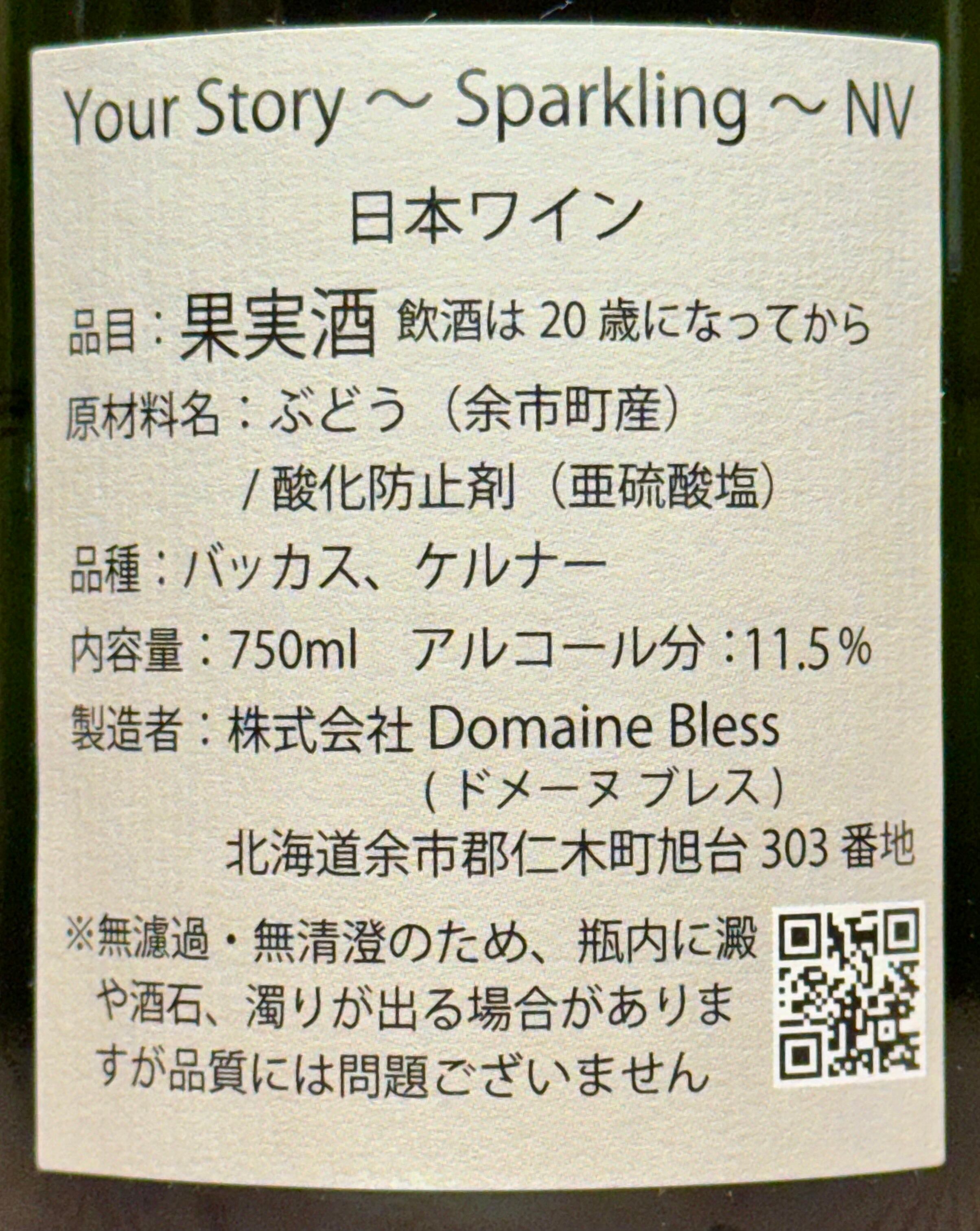 余市安芸農園産のバッカス・ケルナーを使用したの混醸スパークリングワイン。「Your Story」シリーズでは初のスパークリングワインとなります。記念日や新しい門出などお祝いや贈り物に!!タグの裏側はメッセージカードとしてご使用いただけます。ミネラルとフレッシュな酸味、洋ナシ、ハーブやシトラス系の爽やかな味わいな特徴です。